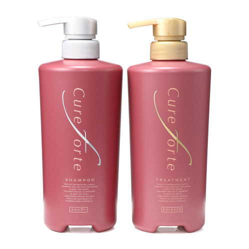 <キュアフォルテ>より、髪を補修しながら頭皮の汚れと髪を洗浄し、ハリコシツヤ髪へ導くシャンプーの600mlサイズ、髪を補修し、しなやかでハリコシツヤのある髪へ導くダメージケアトリートメントの600gサイズのセットです。