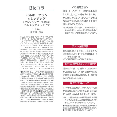 <ミルキーセラムクレンジング 150ml<>BR> 【適用使用量(製品表示)】