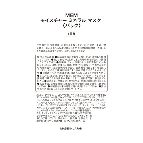単品商品名・MEM モイスチャー ミネラル マスク 1回分