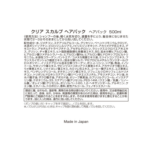 ・クリア スカルプ ヘアパック 500ml