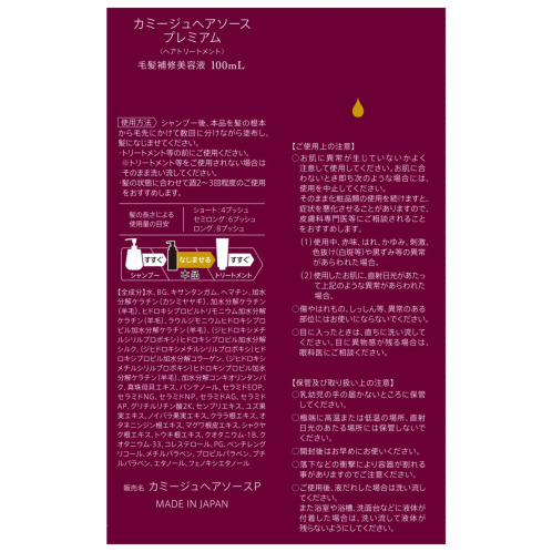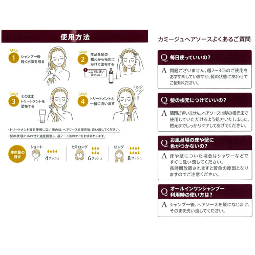・同梱文書:カミージュヘアソースご使用方法