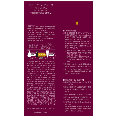 カミージュ 熱によるダメージにも着目 髪を補修して ハリ・コシ・ツヤ美髪へ ヘアソースプレミアム 3本分増量セット