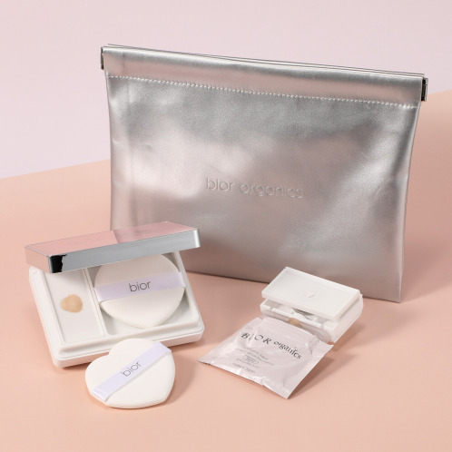 <ビオール オーガニクス>より、独自の“チェンジパウダー感”機能によって、お肌にのせるとパウダーのような質感に変化しリキッドファンデーションのしっとり感とパウダーのサラサラ仕上げを併せ持ったような、艶やかで軽やか、そして若々しい印象で透明感のあるお肌を演出するファンデーションのレフィル(詰替え用)×2、コンパクトケース、ポーチのセットです。