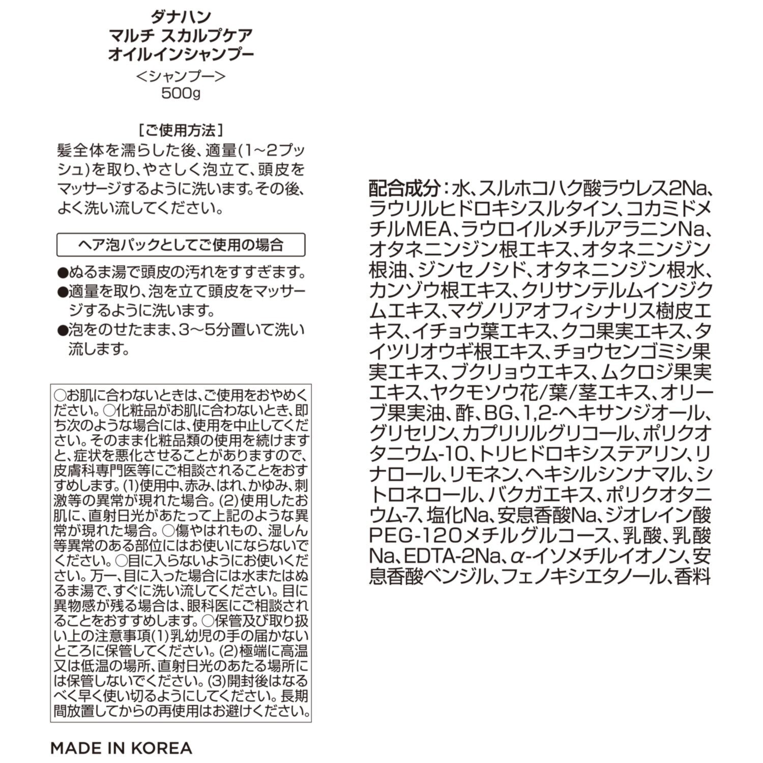ダナハン 韓国伝統美容発想 高麗人参6年根使用! ハリコシのあるツヤ髪へ マルチ スカルプケア オイルインシャンプー