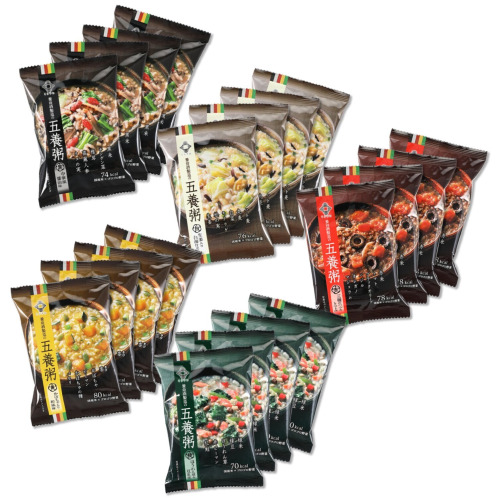 陰陽・五行思想の五色(ごしき)に着目、“五つの色”をテーマにした味わいで、毎日とりいれたい健康粥「養命酒製造の五養粥」です。