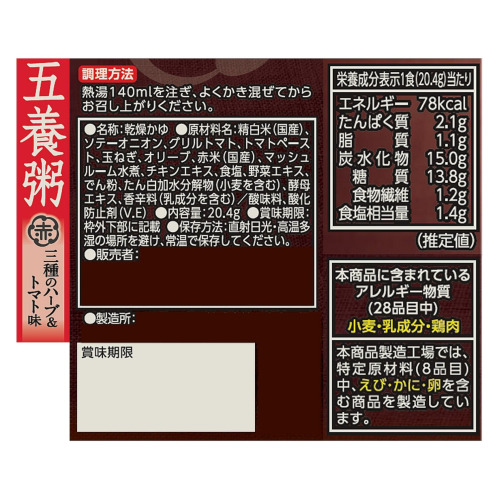 和漢素材とゴロゴロ野菜 簡単調理の健康粥! “養命酒製造の五養粥” <20食セット>