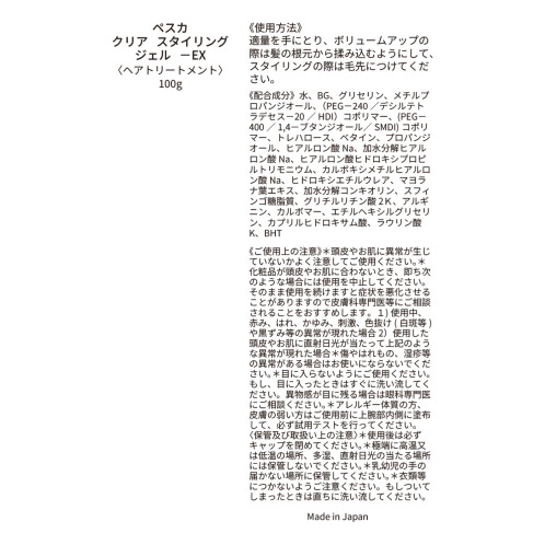 ・同梱文書:ペスカ クリア スタイリング ジェル -EX 使用方法