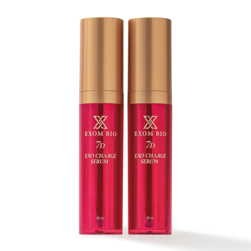 <エクソムバイオ>より、お肌にハリとツヤを与える2種類のヒト由来エクソソーム(ヒト脂肪由来間葉系細胞エク ソソーム、ヒトサイタイ間葉幹細胞エクソソーム)をカプセル化して配合、キメを整える5種類の植物由来エクソソー ム(ツボクサ葉小胞、チャ葉小胞、ツバキ花小胞、ドクダミ小胞、アロエベラ小胞)を配合した美容液×2のセットで す。