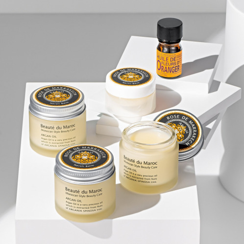 日本でのモロッコ美容を牽引する<ローズ・ド・マラケシュ>より、アルガンオイル(アルガニアスピノサ核油/保湿)、ネロリ精油(ビターオレンジ花油/香り)、プチグレン油をはじめとする植物由来成分を89%配合し、水を一滴も使わずバーム状にした、お肌に潤いを与える保湿バーム35g×3とその10gサイズと、アルガンオイル(アルガニアスピノサ核油/保湿)、ネロリ精油(ビターオレンジ花油/香り)、プチグレン油(香り)といった美容成分を100%(香り成分含む)配合したお肌に潤いを与えるオイル状美容液の3mlサイズのセットです。