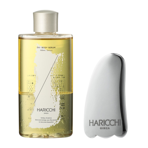 <ハリッチ>より、美容液層とオイル層を絶妙なバランスで組み合わせた二層式タイプでハリ、ツヤ、保湿成分を同時にチャージするボディ用美容液と、ボディを心地よく刺激するカッサのセットです。