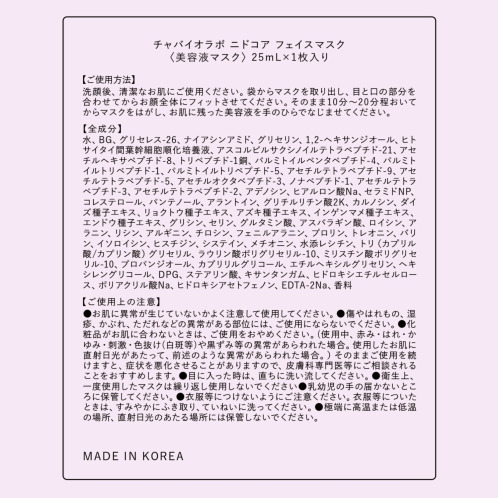 ・チャバイオラボ ニドコア フェイスマスク(25ml×1枚)×10