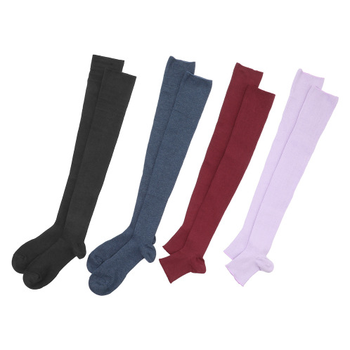 つま先なしはライラック、ワインレッド、つま先ありは黒とマドンナデニムの4色セットでお届けします。