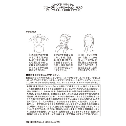 ローズ・ド・マラケシュ 首元までの特別サイズで 保湿・肌引き締めケア フローラル リッチローションマスク デビュー2箱セット