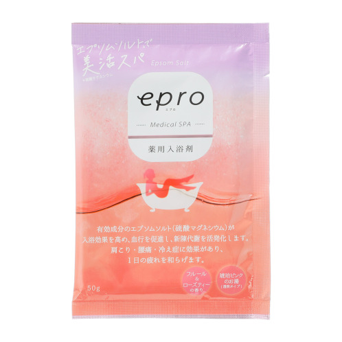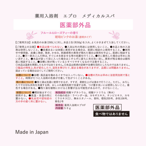 疲労回復・冷え症・ 肩のこり・腰痛・荒れ性に エプソムソルト配合で 優雅な入浴習慣! 薬用入浴剤エプロF <フルール&  ローズティーの香> 50gサイズ8包セット