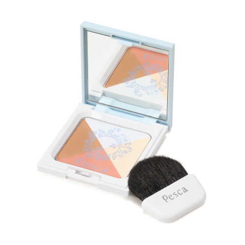フェイスパウダーは、アイスブルー、ジャスミンホワイト、ロージーピンク(チーク)、アンバー(シェーディング)をセットイン。