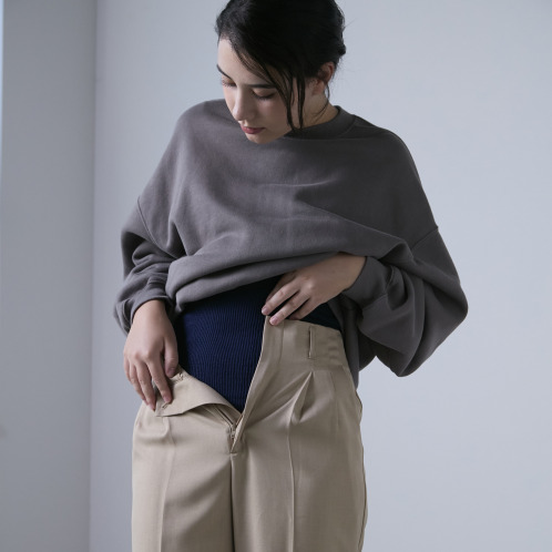 締め付け感なくゆったりと着用できるので、おやすみ時はもちろん、薄着の季節やアウターの下にも響きにくいデザインです。