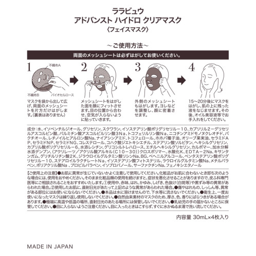 ・ララビュウ アドバンスト ハイドロ クリアマスク 30ml 4枚入り×2