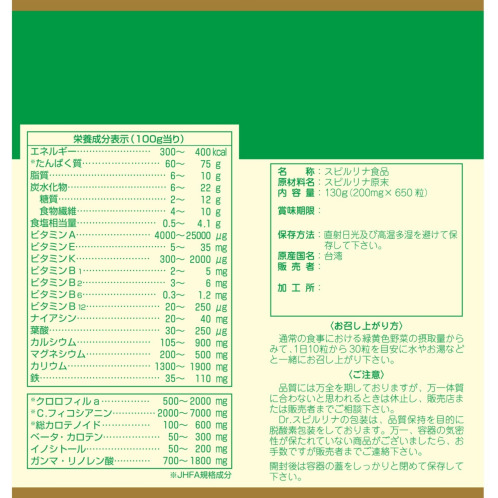 <ドクタースピルリナ 130g(200mg×650粒)※ボトル>