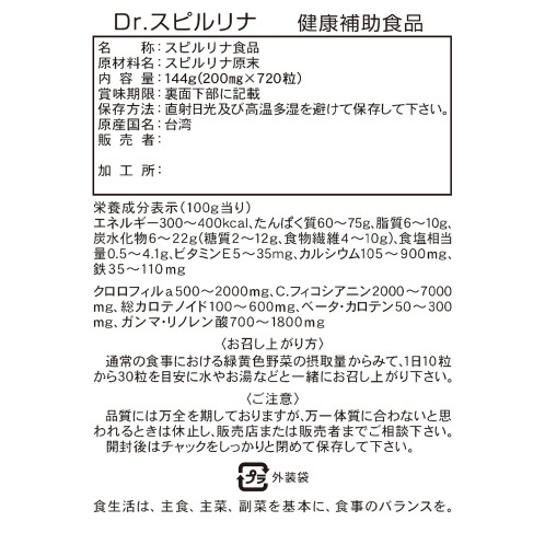 <ドクタースピルリナ 144g(200mg×720粒)>