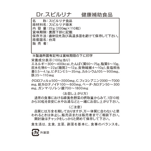 単品商品名・ドクタースピルリナ 22g(200mg×110粒)