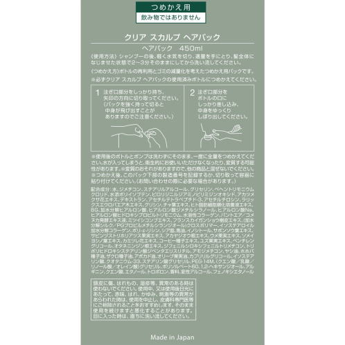 ・クリア スカルプ ヘアパック 詰め替えパウチ 450ml×2