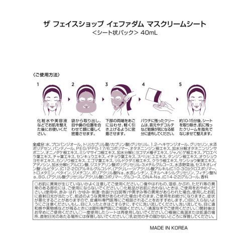 ・ザ フェイスショップ イェファダム マスクリームシート 40ml×10