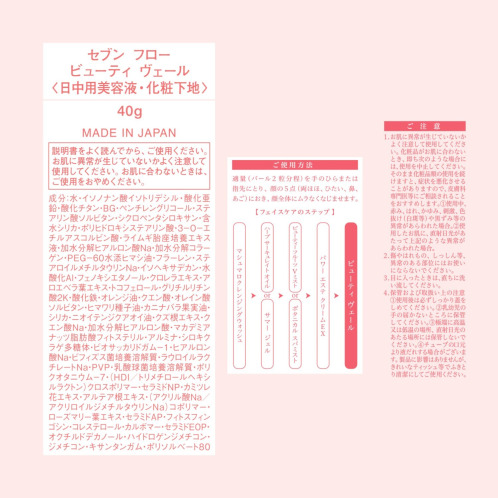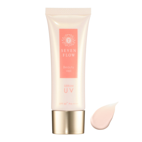 <セブン フロー>より、こだわりの美容成分を配合し、スキンケアをしながら、メイク効果で色ムラや毛穴をカバーして、自然な素肌美を演出する日中用美容液・化粧下地×2のセットです。