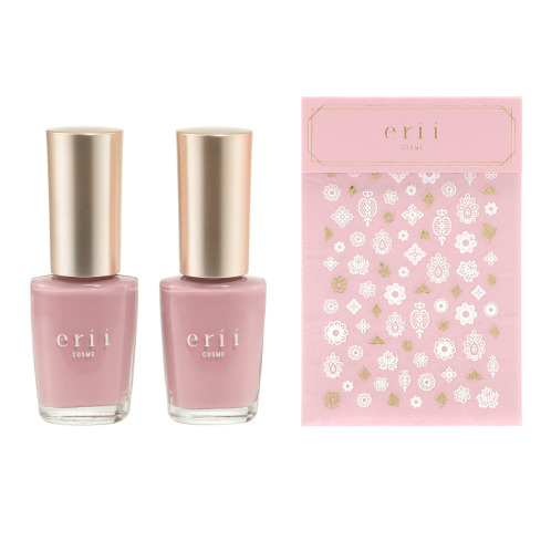 <エリィ>より、爪をコーティングすることにより物理的に補修し保護するネイル美容液×2本、ネイルシール 002のセットです。