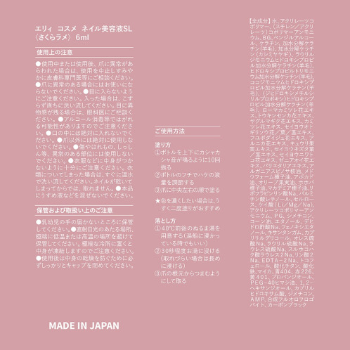 単品商品名・エリィ コスメ ネイル美容液 (SL、UB2、SR) 6ml