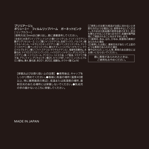 単品商品名・ブリリアージュ ボリューミー フィルムリップバーム ガーネットピンク
