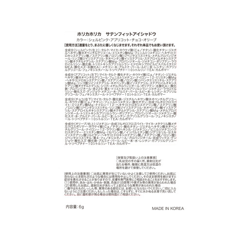 <サテンフィットアイシャドウ(シェルピンク・アプリコット・チョコ・オリーブ)6g>