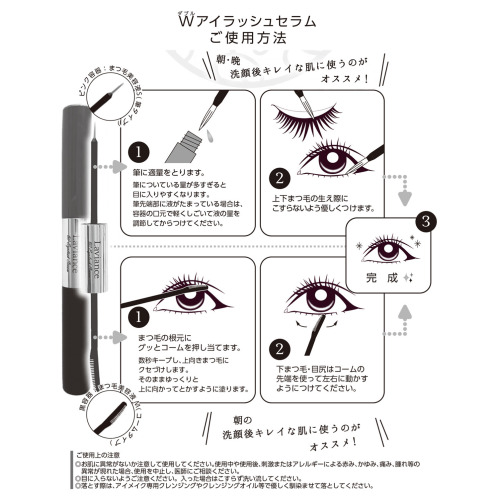 ・同梱文書:ラヴィアンス ダブルアイラッシュセラムの使用上の注意、使用方法