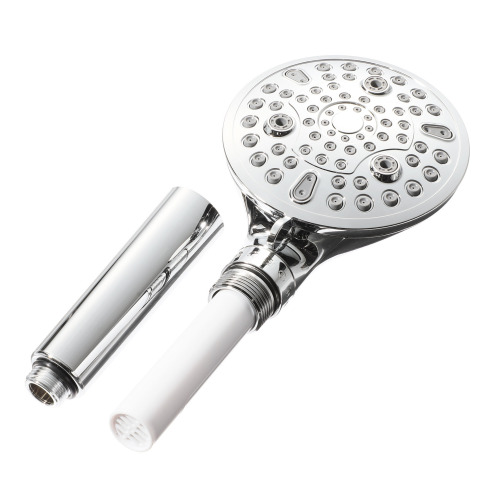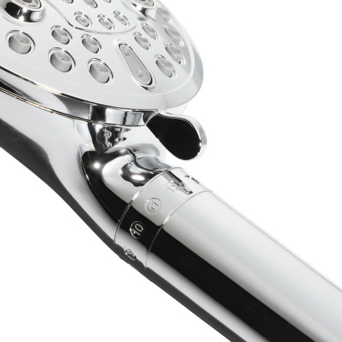 リッチな大きめシャワーヘッドには、8つの水流モードを搭載。ヘッドのサイドにあるスイッチで、片手で簡単に切り替えができる操作性も兼ね備えています。さらに、内蔵のビューティカートリッジには6種類のボールが入っており、塩素除去効果があり、水道水の水質を変えます(※カートリッジ無しでの使用も可能)。ビタミンC・トルマリンボールを採用しているのもポイント。ナノビューティレボリューション(別売り)と一緒に使うことでさらに効果アップが期待できます。