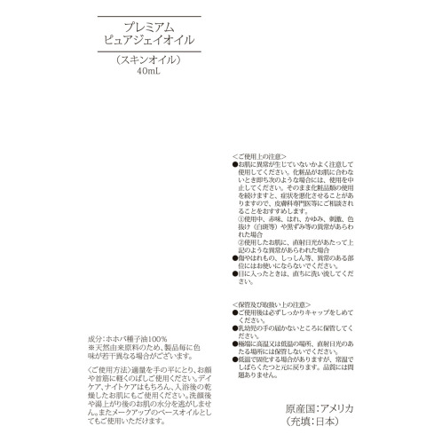 ※プレミアム ピュアジェイオイル:パッケージ表示は「スキンオイル」
