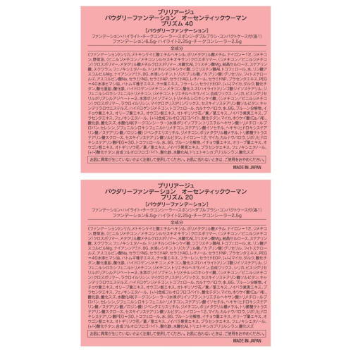 ※パウダリーファンデーション オーセンティックウーマン プリズム:  パッケージ表示は普通肌「40」、色白肌「20」