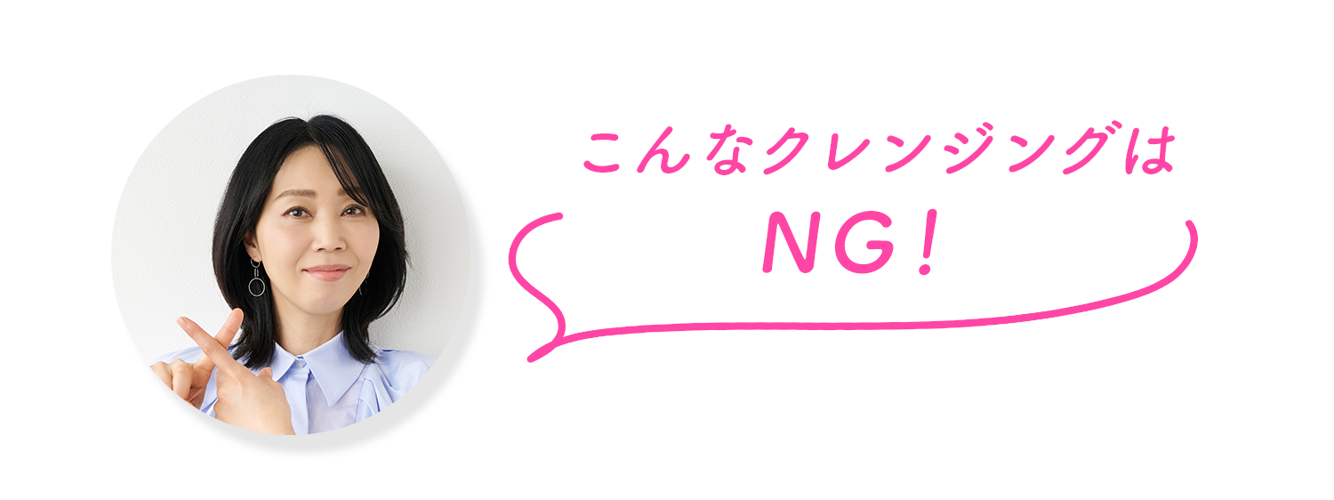 「ゴシゴシこするなどして強い摩擦を与え続けると、肌が硬くなったり、赤黒い色素沈着が起こることがあります。マッサージのような強い圧もNG。また、どんなに美容成分を配合したクレンジングであっても、メイクを落とすものとして作られている以上、洗浄成分などが刺激となることも。時々、クレンジング剤を長時間のせることでメイクを浮かせようとする方がいらっしゃいますがこれもNG。スマホなどを見ながらの“ながら”クレンジングも避けましょう。ただ、クレンジング剤はメイクにしっかりとなじませて浮かせてから落とすことも大事。つまり、メイクオフは優しく、素早く、かつ丁寧に行うことを心がけて」