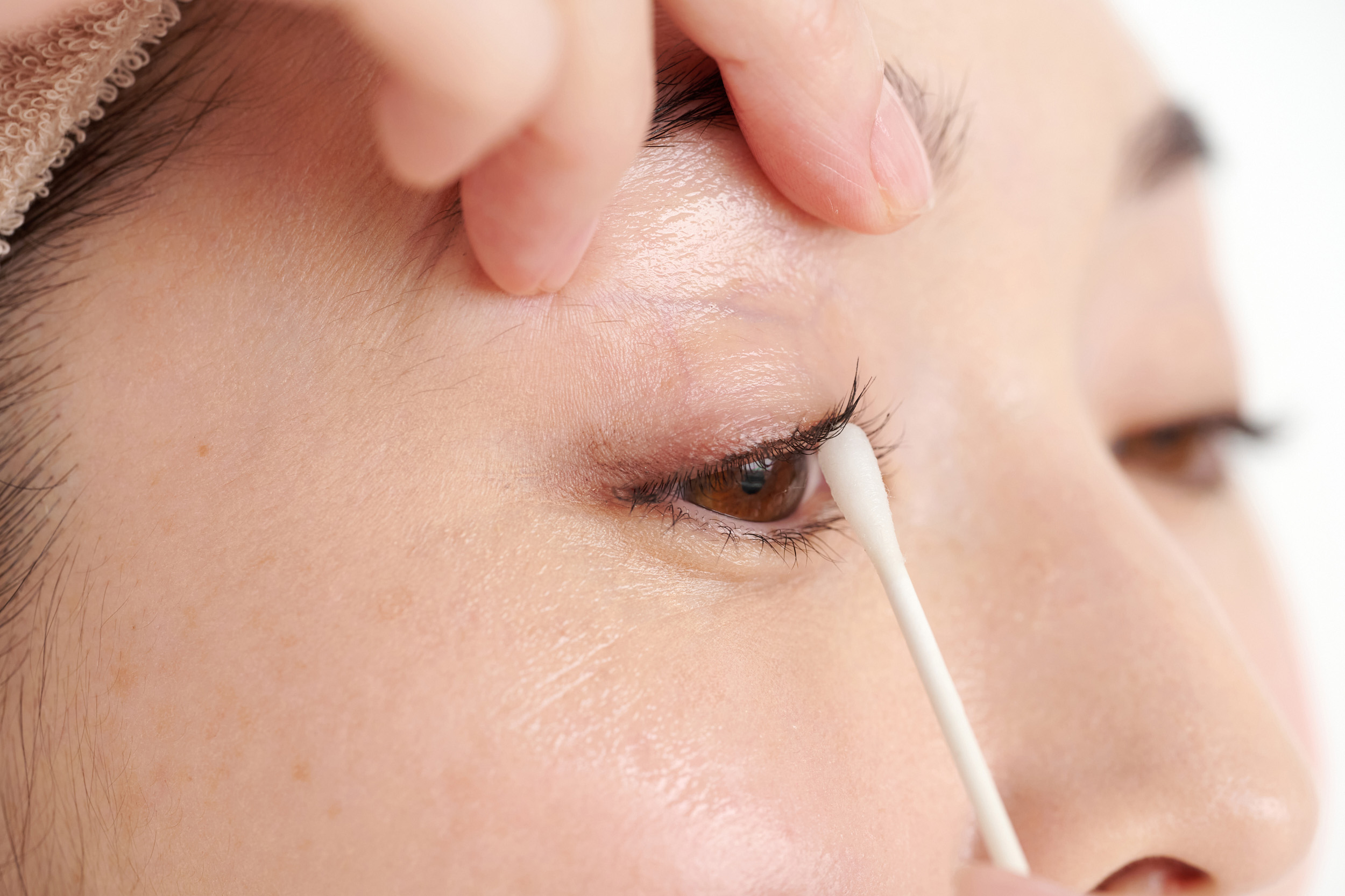 「コットンだけでアイライナーを落とそうとすると、目の中にリムーバーが入ってしまったり、まつげの隙間が落としきれなかったりすることも。マスカラと一緒にコットンでオフした後に、リムーバーを含ませた綿棒でまつげの隙間まで丁寧にオフしましょう。とくにアイラインを引いている人は目の中に入りやすいので、刺激を避けるためにもきちんとオフすることを心がけて」