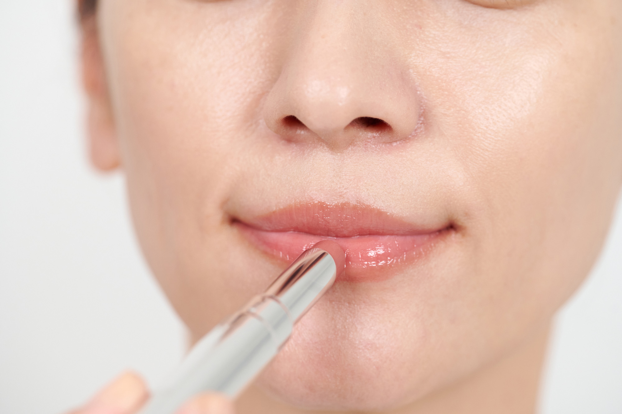 直塗りで、リップを唇全体にサラッと塗りましょう。唇の凹凸をカバーし、コンディションを整え、ヘルシーなツヤ感が宿ります。